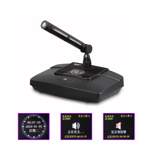 1, 单元采用2英寸高清彩色液晶显示屏,等待操作期间,会自动切换到高清时钟界面,实时显示当前时间。 2, 发言期间,显示屏会显示已发言时间,限时发言时,发显示剩余可发言时间。关闭发言后,会显示静音标志,和“发言请按键”指示。 3, 每一个会议单元有一个唯一的编号,支持中控设备用平板电脑控制打开和关闭发言状态,方便集中管理会议进程,让会议室更智能化。 4, 专业高保真电容咪芯,拾音灵敏、语音清晰,带宽达到20Hz~20KHz 5, 采用防干扰电路设计,可防止手机等电子产品的干扰。 6, 会议杆头部带发光灯圈,可显示单元发言、关闭状态。 7, 单元为无源设备,由系统主机供电。输入电压为24V,属安全范围。 8, 单元由1,5M*2M T型8芯线及超六类网线连接,线材采用全线铝箔、水线屏蔽,大大降低强电磁波对线材的干扰。 9, 带声控启动功能,发言时话筒单元电源自动打开(需要主机开启此功能)。 10,支持多个主席单元,连接时不受位置限制可任意安装,具有全权控制会议秩序的优先功能,可控制会议气氛。 11 狠狠色丁香婷婷综合最新地址, "手拉手"电缆串联连接模式,便于安装和维护。万一某个单元损坏也不会影响其它单元使用。 12,主席单元拥有优先发言权限,可以随时打断代表单元发言。 。